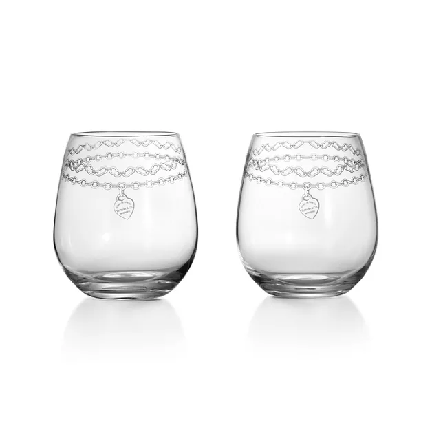 1966년에 처음 선보인 키 링에서 영감을 받은 리턴 투 티파니™ 컬렉션은 시그니처 모티프로 잘 알려져 있습니다. 이 스템리스 레드 와인 글래스 2개 세트는 에칭 하트 태그와 체인 디테일이 특징입니다. 레드 와인 글래스를 티파니 홈 에센셜 자수 리넨 코스터 세트와 함께 사용해 완벽한 테이블 세팅을 연출해보세요.