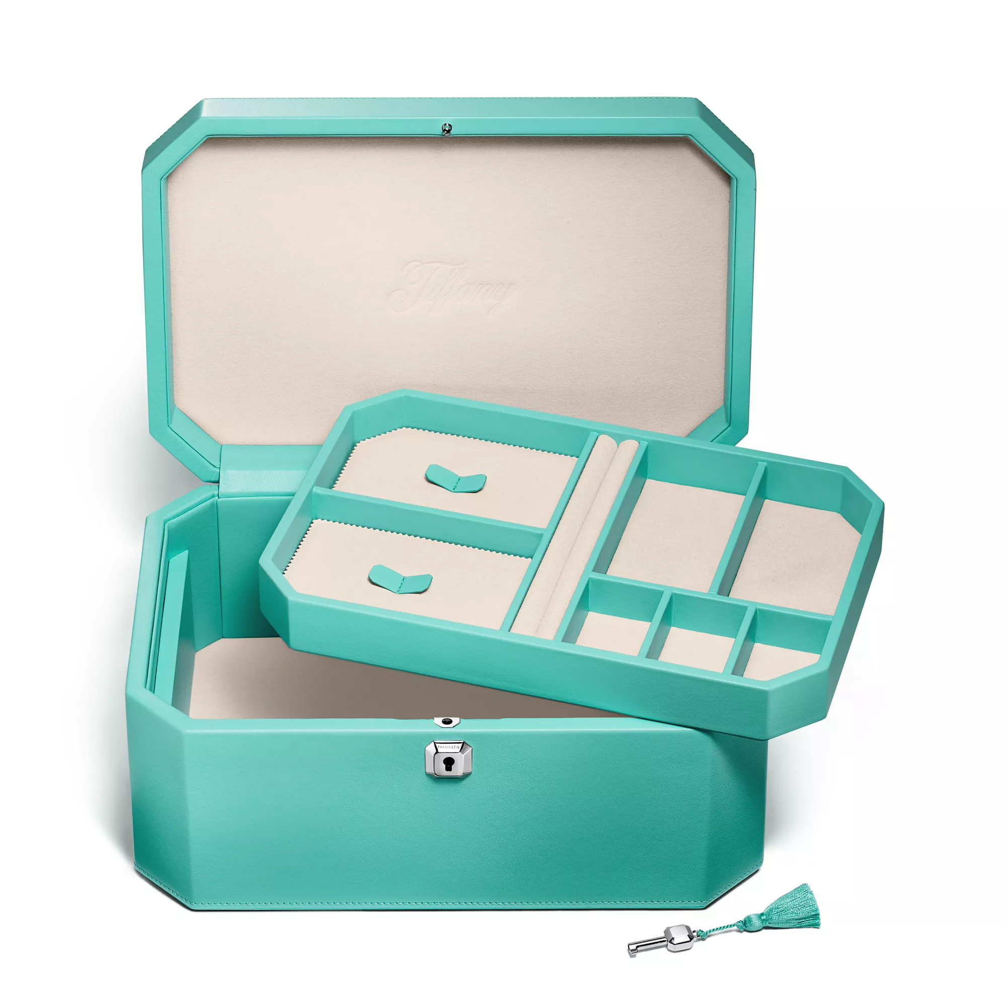 티파니 패싯은 티파니와 뉴욕의 오랜 관계, 사랑과 영원의 세계에서 이어온 유산, 최고의 다이아몬드와 컬러 젬스톤 프리미어 공급업체로서의 명성에서 영감을 받았습니다. 이 엑스트라 라지 주얼리 박스는 티파니 블루에 젬스톤 같은 실루엣이 매력적입니다. 좋아하는 티파니 제품을 이 주얼리 박스에 보관하세요.