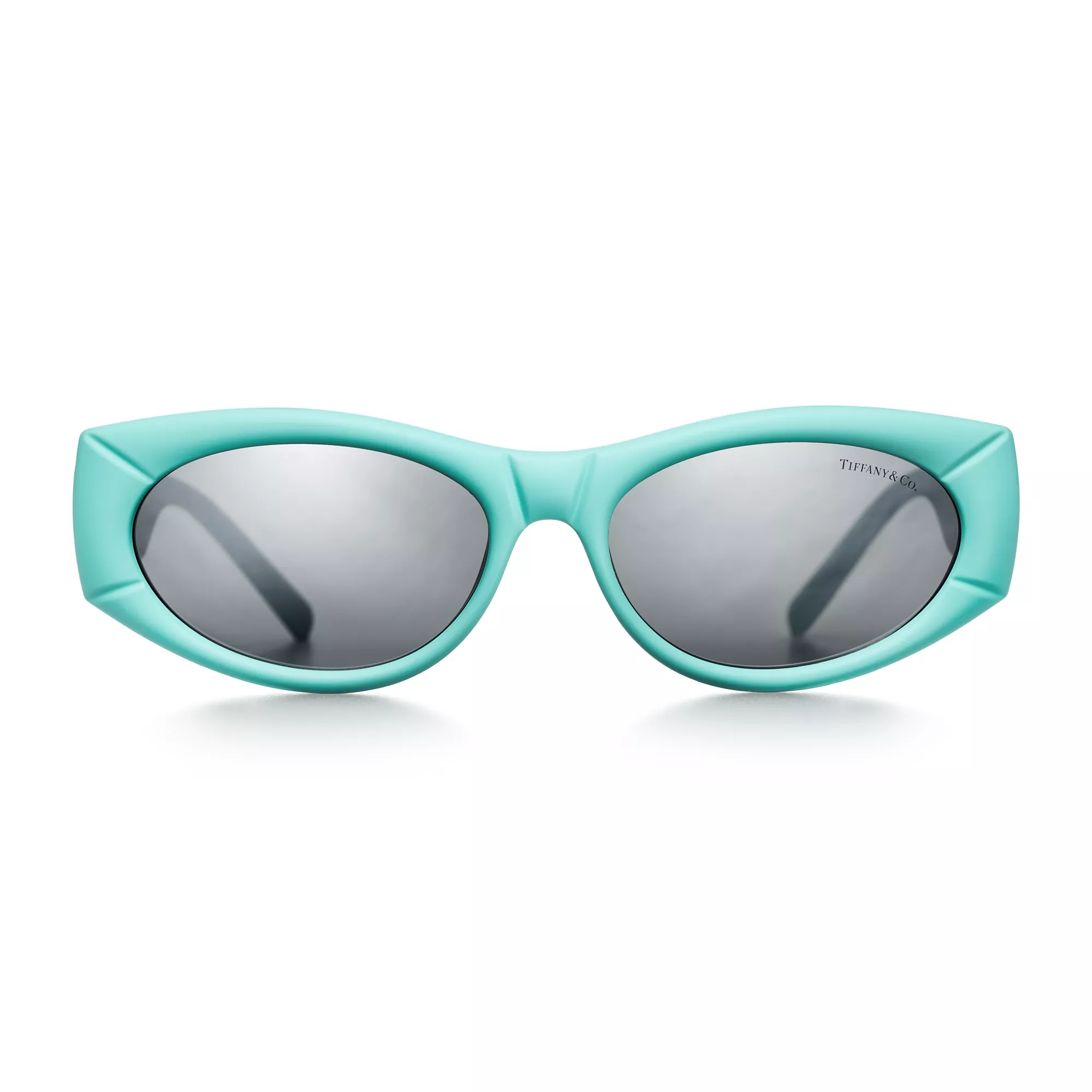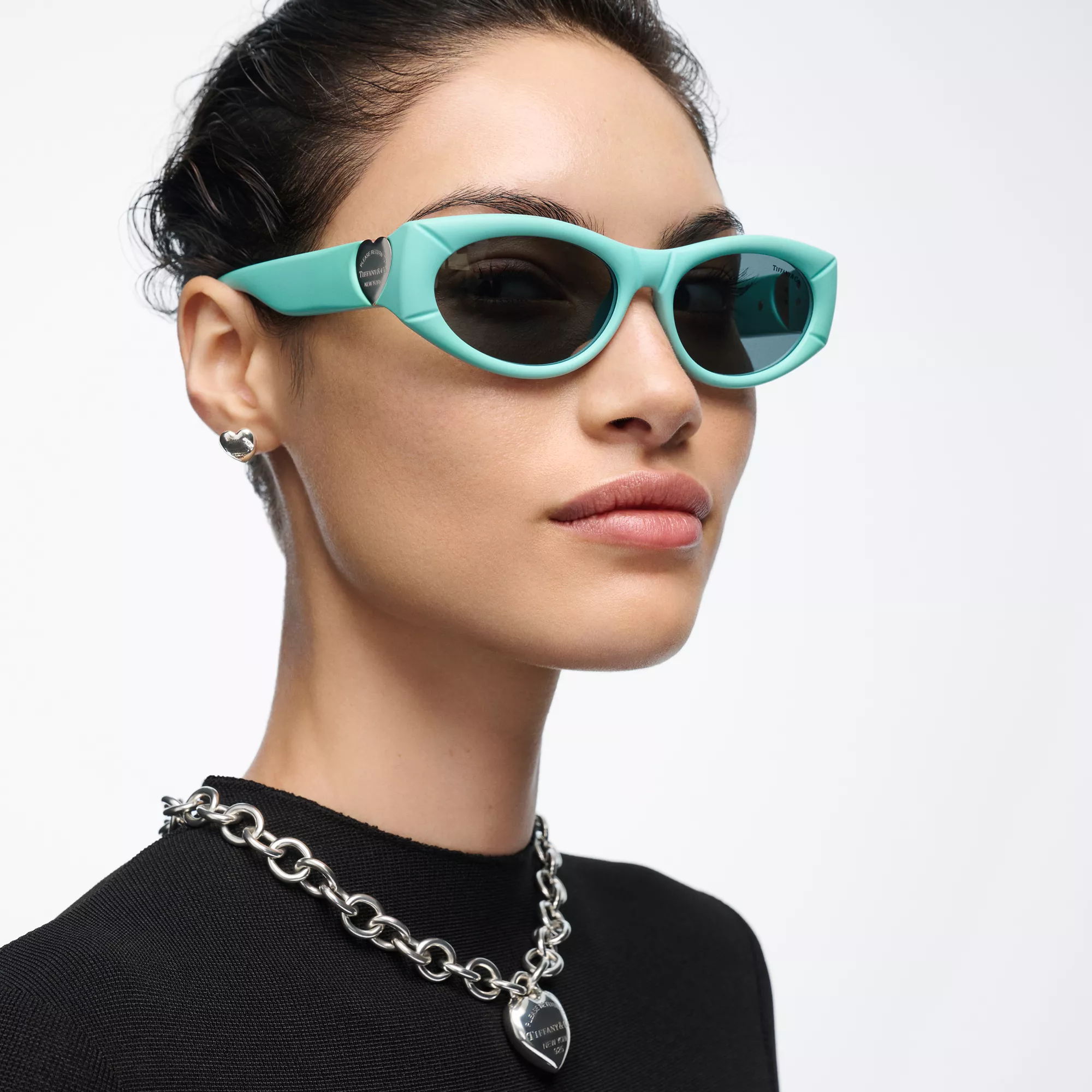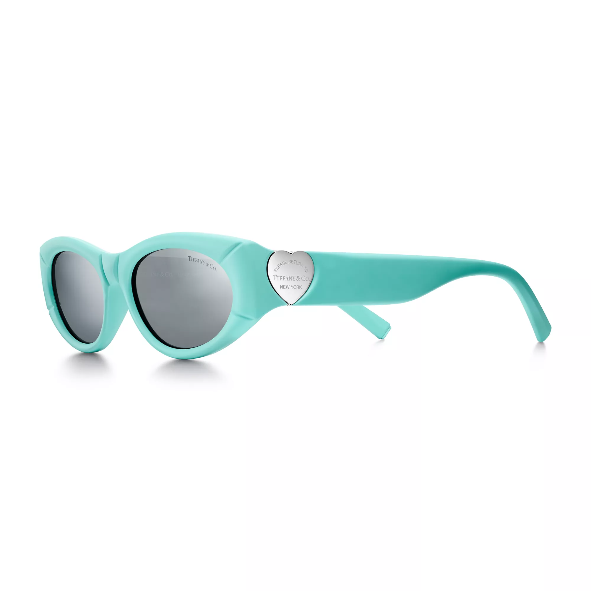 티파니의 가장 독특한 디자인에서 영감을 받은 리턴 투 티파니 선글라스는 티파니 블루 아세테이트로 제작되었으며, 그레이 미러 렌즈와 실버 컬러 액센트가 티파니의 아이코닉한 주얼리를 떠올리게 합니다. 선글라스는 독특한 고무 효과와 하트 태그에서 영감을 받은 힌지 디자인이 특징입니다.