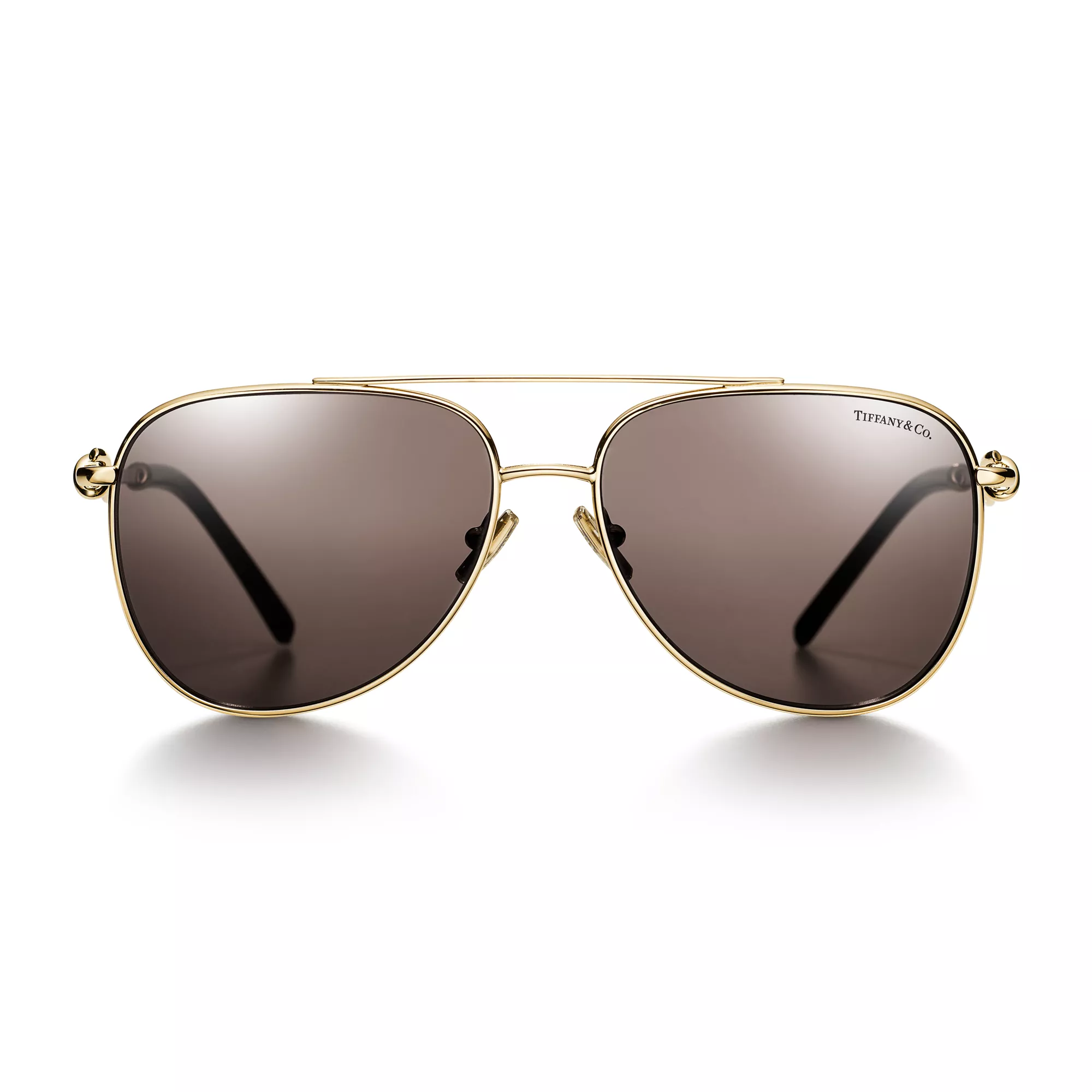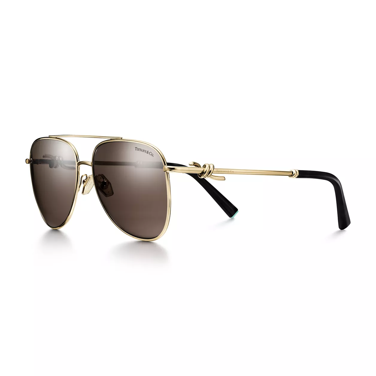 티파니 노트는 사랑의 변치 않는 결속을 표현합니다. 주얼리 컬렉션을 대표하는 디자인 코드에서 영감을 받아 탄생한 선글라스는, 템플의 시그니처 매듭 모티프와 편안함을 더하는 아세테이트 팁이 특징입니다. 페일 골드 컬러 메탈 프레임에 라이트 브라운 파일럿 렌즈가 매력적입니다.
