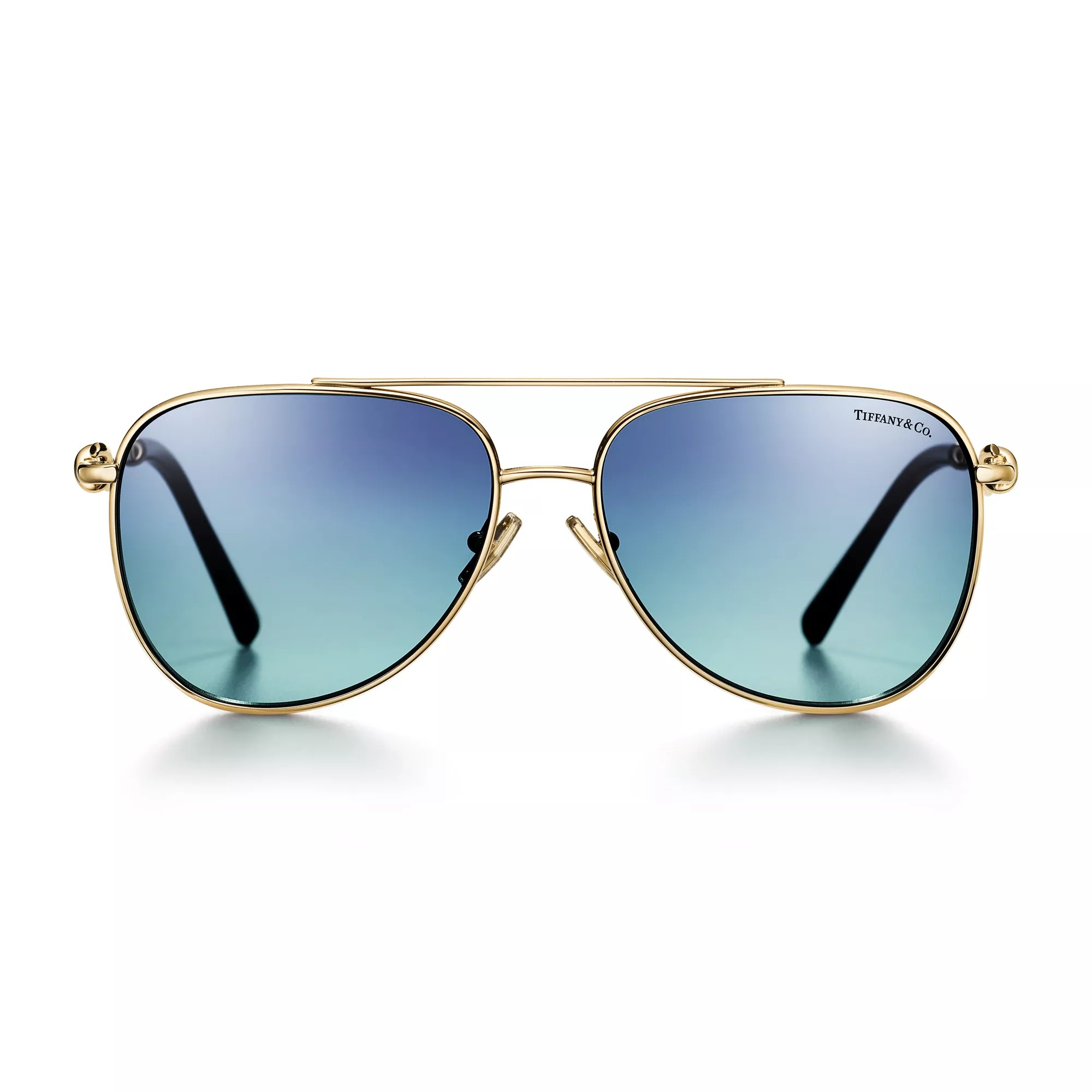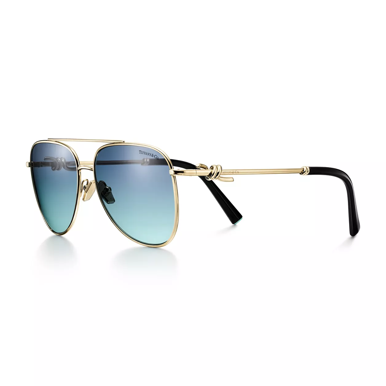 티파니 노트는 사랑의 변치 않는 결속을 표현합니다. 주얼리 컬렉션을 대표하는 디자인 코드에서 영감을 받아 탄생한 선글라스는, 템플의 시그니처 매듭 모티프와 편안함을 더하는 아세테이트 팁이 특징입니다. 페일 골드 컬러 메탈 프레임에 티파니 블루 그래디언트 파일럿 렌즈가 매력적입니다.