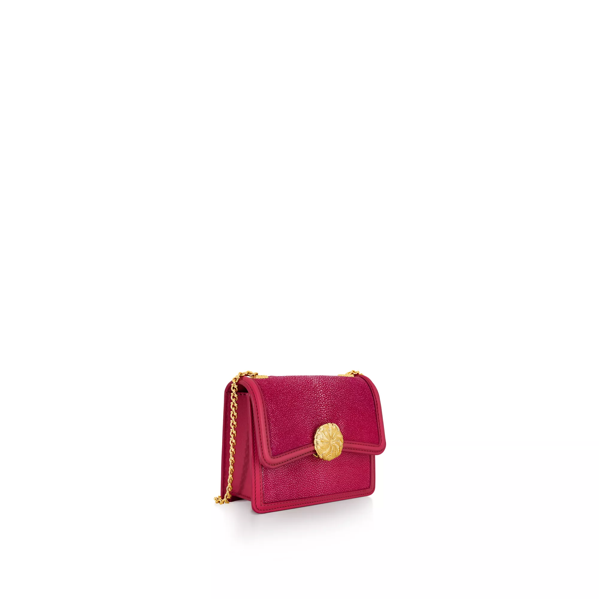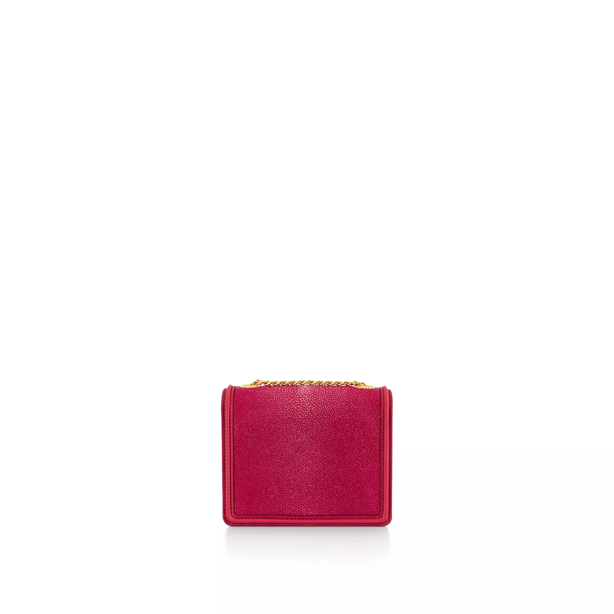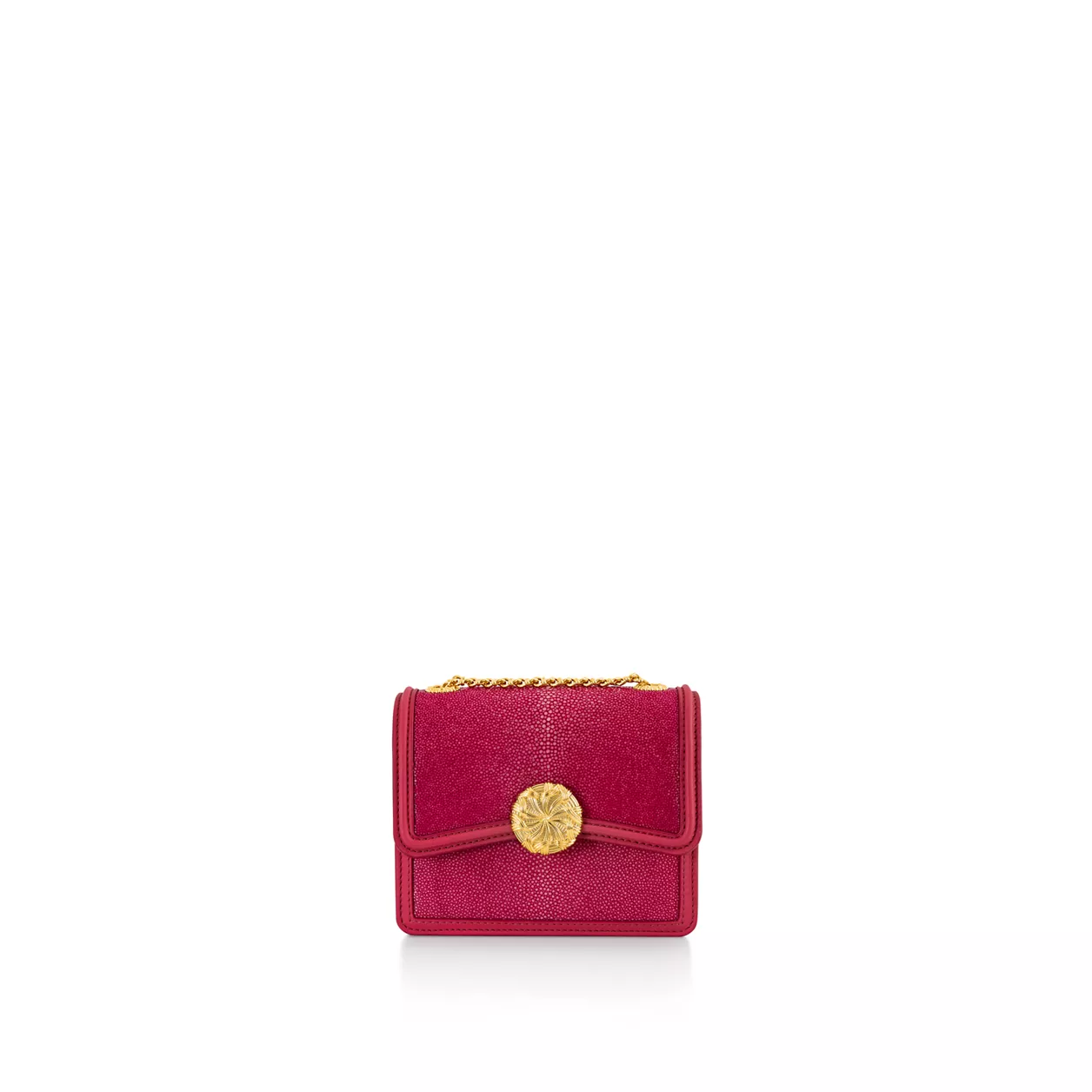 Jean Schlumberger by Tiffany Ribbons 컬렉션은 텍스타일 업계에서 일했던 전설적인 디자이너의 가족의 역사와 그의 작품에 자주 등장하는 화려한 트리밍에서 영감을 받았습니다. 스팅레이 레더로 제작된 이 백은 티파니 블루 컬러의 안감이 있는 앞면 슬립 포켓 1개, 탈부착 가능한 거울 1개가 있는 뒷면 내부 포켓 1개가 특징입니다. 골드 도금 브라스 클로저는 쟌 슐럼버제가 1957년에 디자인한 컴팩트한 거울에서 선보인 모티프를 떠올리게 합니다.