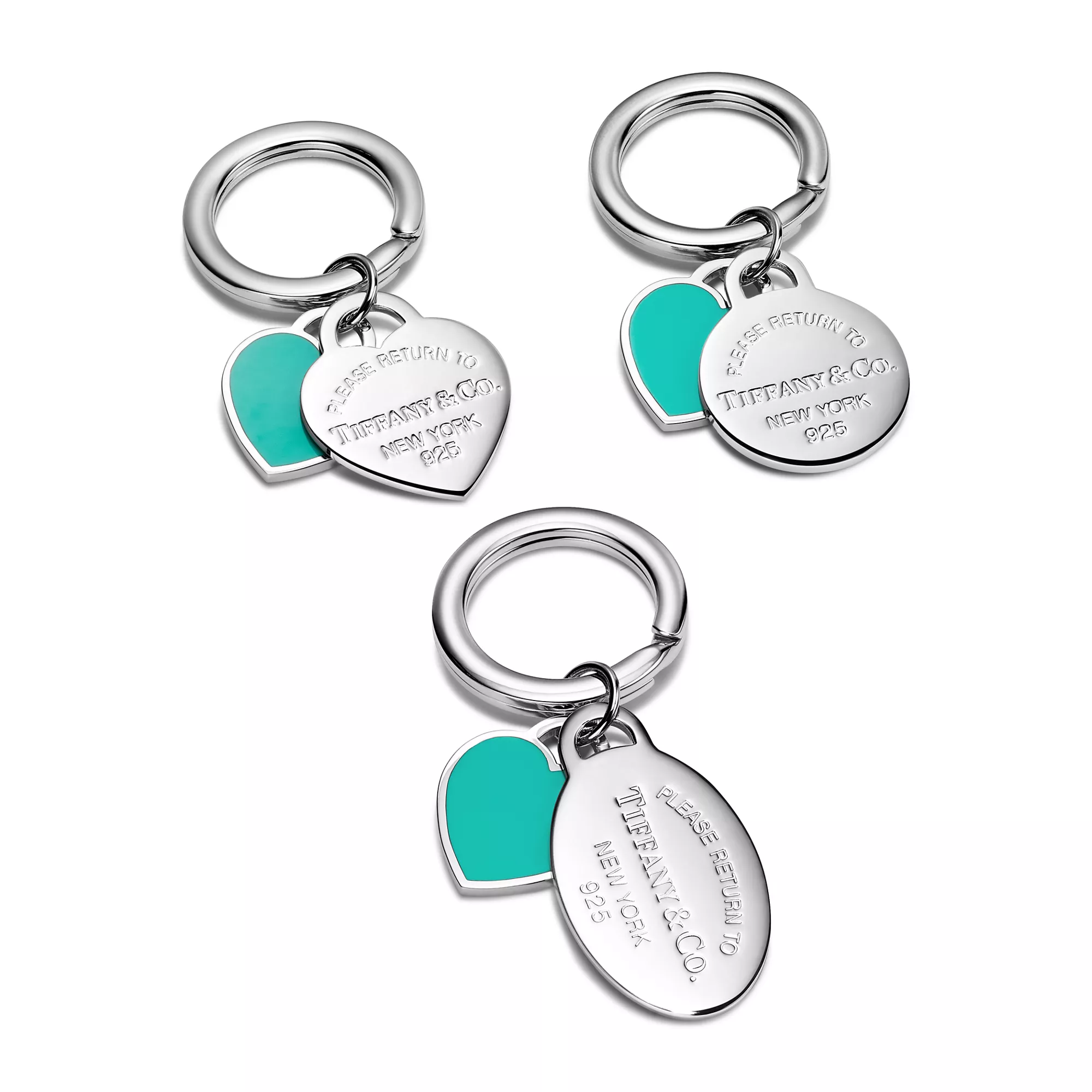 라운드 & 하트 태그 키 링 실버, 티파니 블루