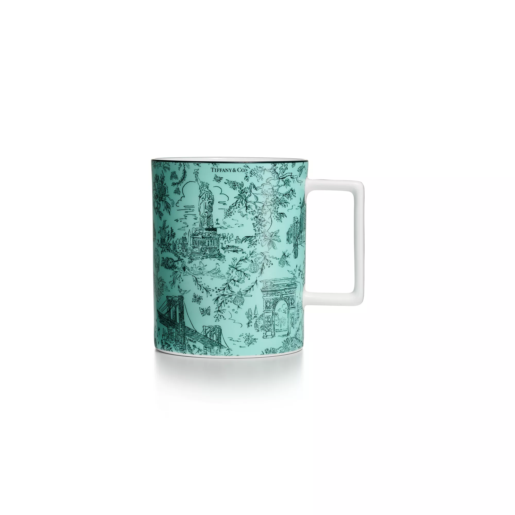 티파니의 기원과 헤리티지를 기리는 티파니 트왈 디자인을 만나보세요. 장난스러우면서도 우아한 이 작품은 티파니 아카이브의 뉴욕 일러스트에서 영감을 받아 탄생하였습니다. 버드 온 어 락과 브루클린 브릿지의 만남;티파니 다이아몬드와 자유의 여신상. 티파니 블루 색상의 머그는 핸드 페인팅된 블랙 림과 정교한 프린트가 특징입니다. 티파니 트왈 플레이트와 함께 연출해 나만의 세트를 만들어 보세요.