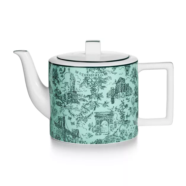티파니의 기원과 헤리티지를 기리는 티파니 트왈 디자인을 만나보세요. 장난스러우면서도 우아한 이 작품은 티파니 아카이브의 뉴욕 일러스트에서 영감을 받았습니다. 버드 온 어 락과 브루클린 브릿지의 만남;티파니 다이아몬드와 자유의 여신상. 티파니 블루 커피 포트는 핸드 페인팅된 블랙 림과 정교한 프린트가 특징입니다. 티파니 트왈 컬렉션 아이템과 함께 연출해 어울리는 구성을 완성하거나, 다른 티파니 홈 패턴과 믹스해 연출해 보세요.