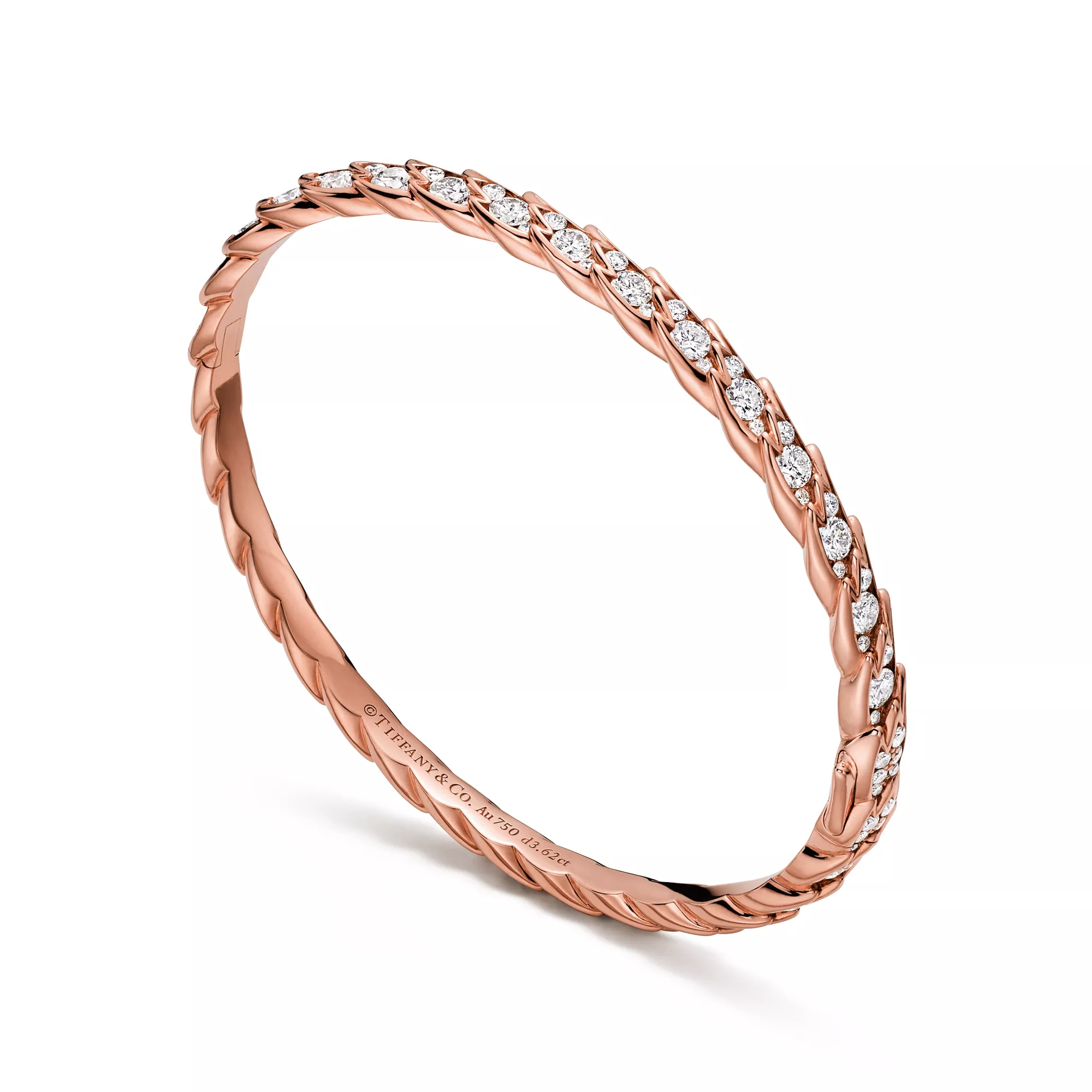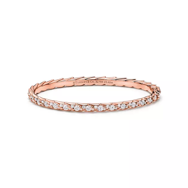 티파니 버드 온 어 락은 사랑의 낙천주의를 떠올리게 합니다. 이 추상적인 모티프는 세팅이 눈에 띄지 않아, 마치 바람에 휩쓸리는 듯한 날개의 순수함만을 강조합니다. 특수 하이 주얼리 기법으로 정교하게 제작되어 빛나는 18K 로즈 골드 뱅글은 대담하고 조형적인 깃털 디자인이 특징입니다. 자연에서 발견되는 우아한 움직임을 포착한 각 디자인은 뛰어난 광채의 다이아몬드와 귀금속의 세심한 균형을 통해 생명력을 얻었습니다. 레이어링으로 연출하면 아이템의 가장자리와 깃털 모양의 실루엣이 서로 어우러져 완벽하게 어울립니다. 쟌 슐럼버제가 디자인한 오리지널 버드 온 어 락 브로치의 아방가르드한 예술성을 고스란히 담은 모티프가 볼드하고 텍스처가 느껴지는 작품으로 재탄생되었습니다.
