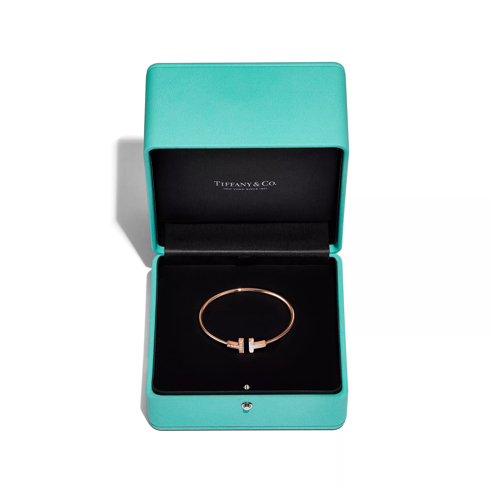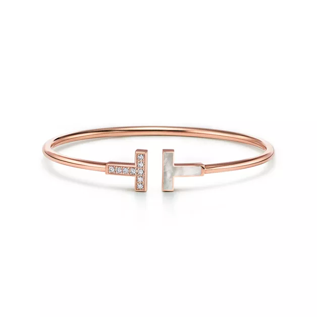 티파니 T 와이어 브레이슬릿, 로즈 골드, 다이아몬드와 마더 오브 펄 세팅