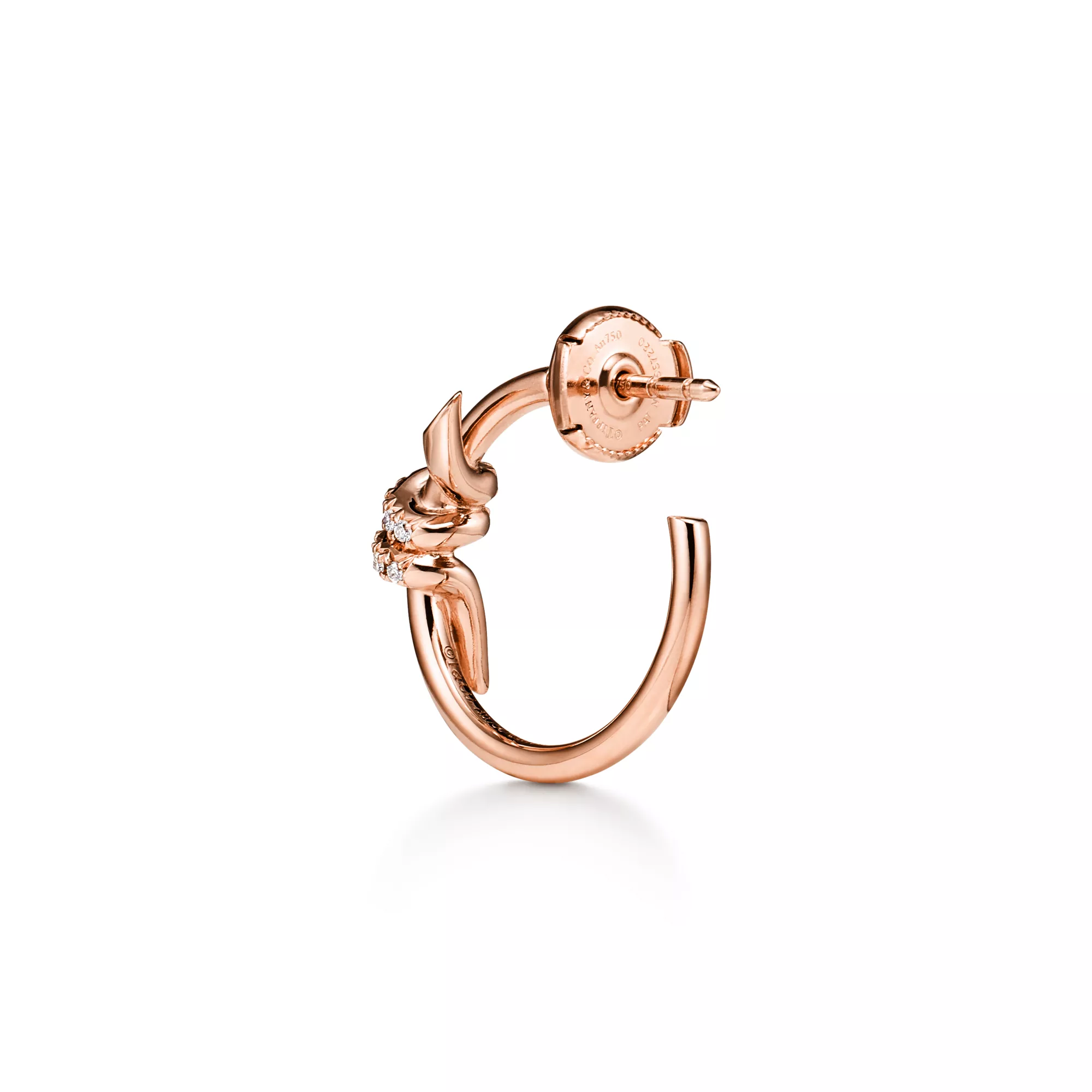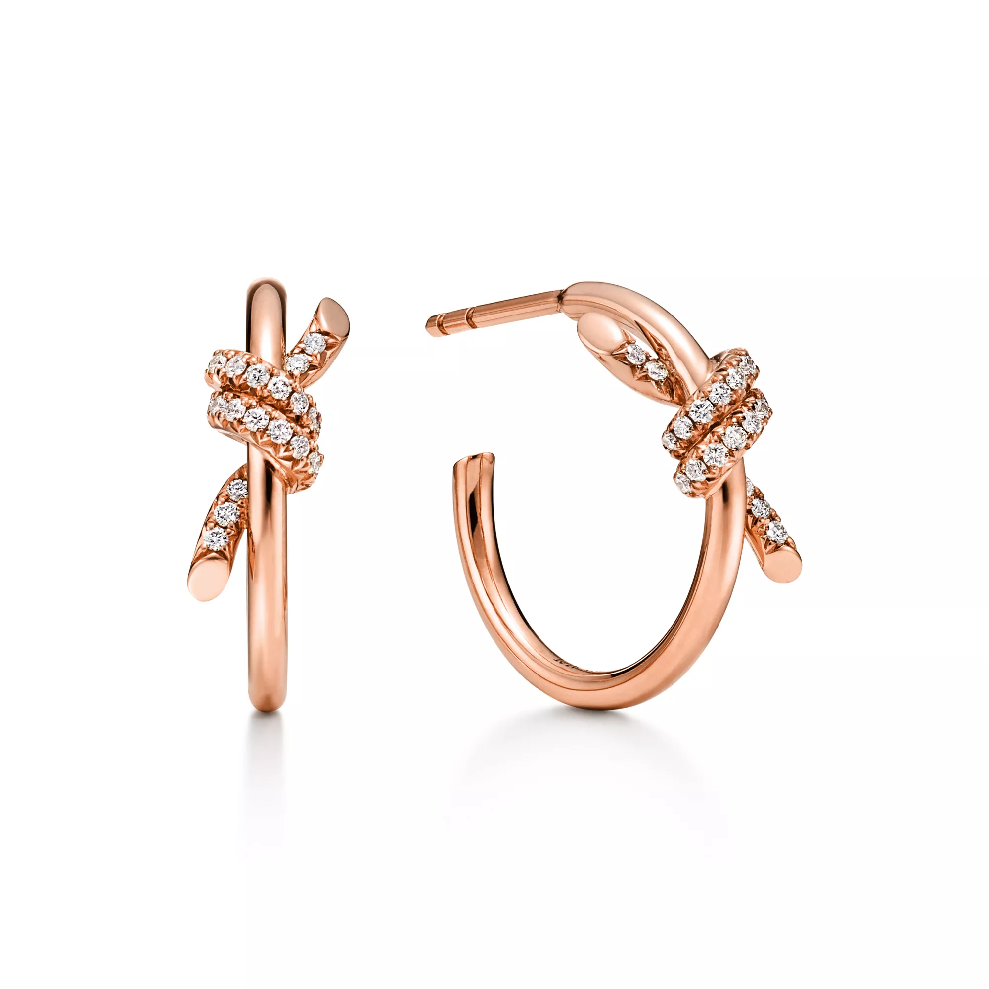 티파니 노트는 사랑의 변치 않는 결속을 표현합니다. 1889년에 제작된 아카이브 리본에서 영감을 받아 탄생한 노트는 인생에서 가장 오래 지속되는 유대감과 의미 있는 연결을 상징합니다. 18K 로즈 골드로 세공된 후프 이어링은 수작업으로 폴리싱하여 더욱 빛나는 광채를 선사합니다. 티파니의 엄격한 기준에 따라 선별된 각 라운드 브릴리언트 다이아몬드 또한 최고의 광채를 발할 수 있도록 수작업을 통해 정교하게 세팅되었습니다. 이어링을 단독 착용하거나 클래식 스터드와 함께 착용해 강렬한 룩을 시도해 보세요.