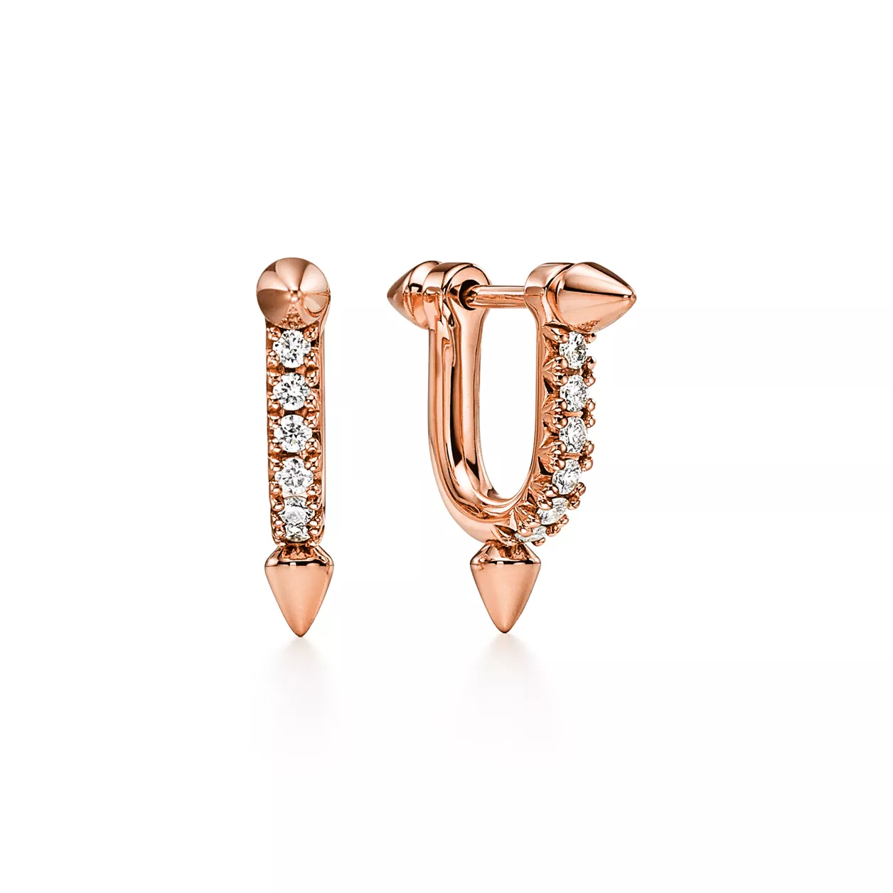티파니의 유산을 이어 선구적인 아티스트와의 협업을 선보이는 티파니 타이탄 by 퍼렐 윌리엄스는 창의성을 불러일으키는 촉매로 저항 정신을 표현하였습니다. 포세이돈과 그의 삼지창에서 영감을 얻은 디자인을 선보입니다. 18K 로즈 골드로 제작된 각진 창 쉐입의 모티프와 부드러운 곡선의 링크가 강렬한 룩을 선사합니다. 피쉬테일 세팅 파베 다이아몬드를 통해 모든 각도에서 빛을 받아들여 최상의 광채를 선보입니다. 골드 스터드로도 활용할 수 있는 컨버터블 이어링으로 다양한 스타일을 연출합니다.