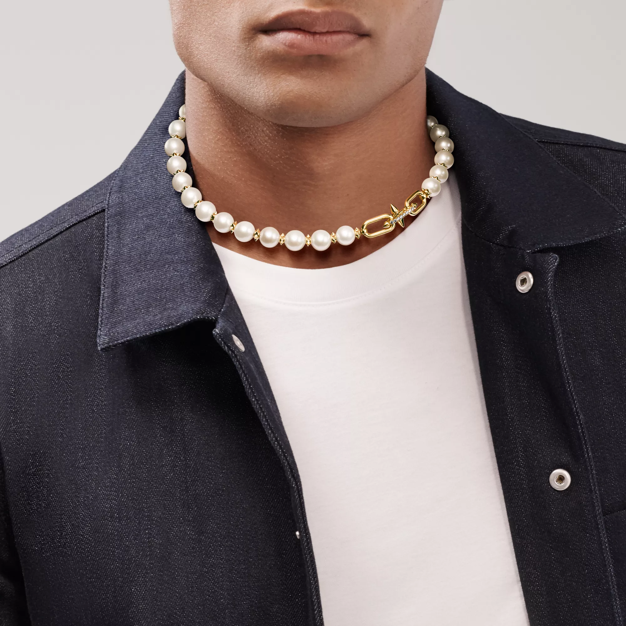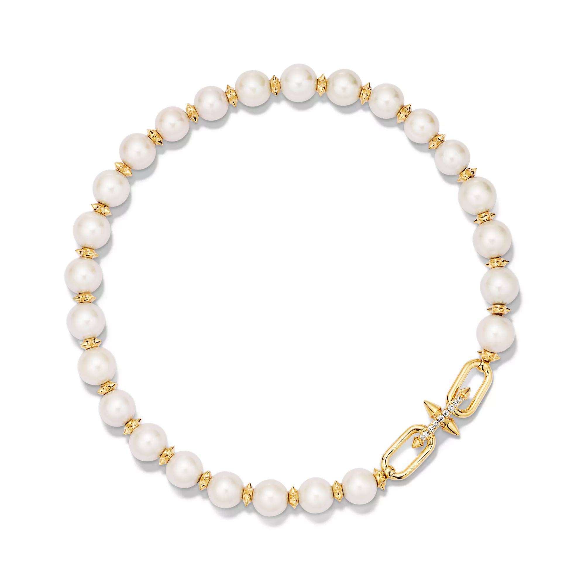티파니의 유산을 이어 선구적인 아티스트와의 협업을 선보이는 티파니 타이탄 by 퍼렐 윌리엄스는 창의적인 저항 정신을 표현하였습니다. 포세이돈과 그의 삼지창에서 영감을 얻은 디자인을 선보입니다. 18K 골드로 제작된 스파이크 론델이 커다란 진주와 번갈아 가며 강렬한 룩을 선사하며, 다이아몬드 잠금장치는 광채를 극대화합니다.