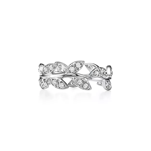 팔로마 피카소™ 올리브 리프 링, 화이트 골드, 다이아몬드 세팅, 네로우