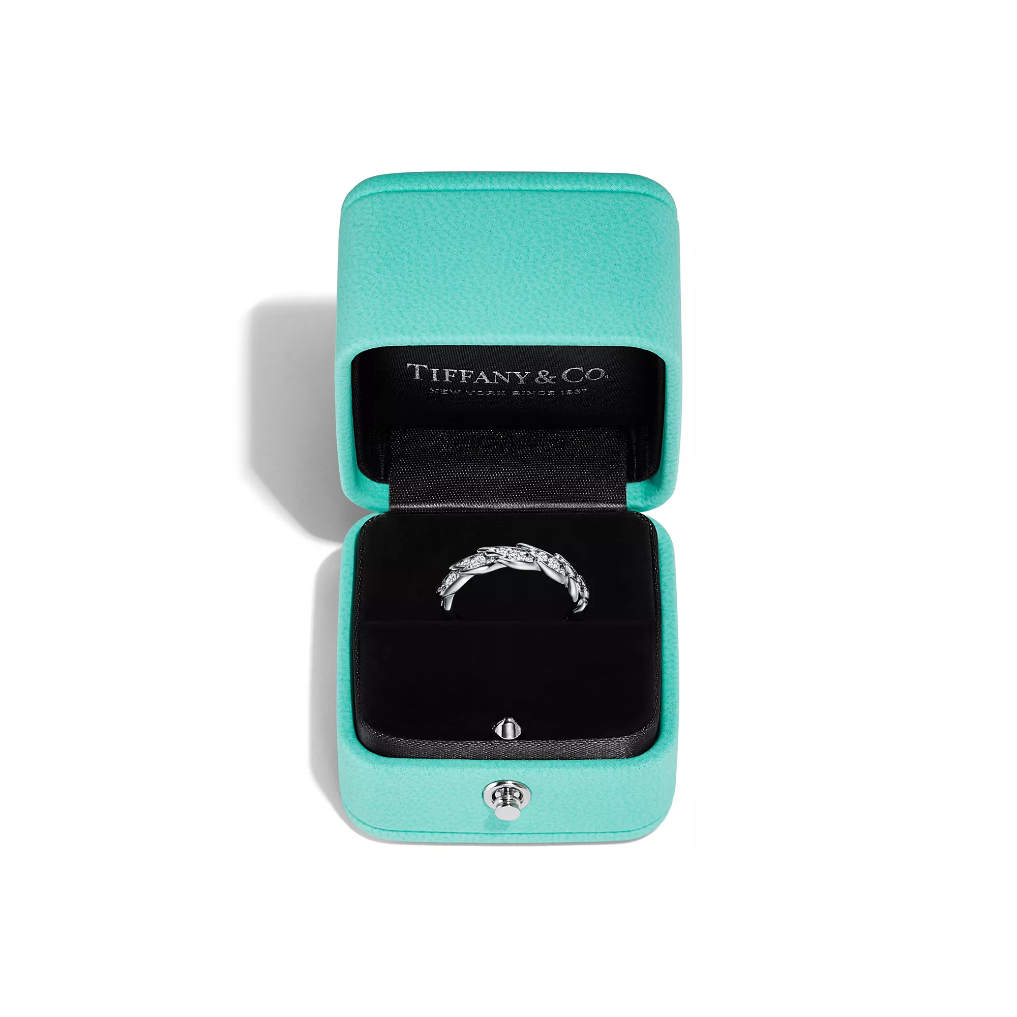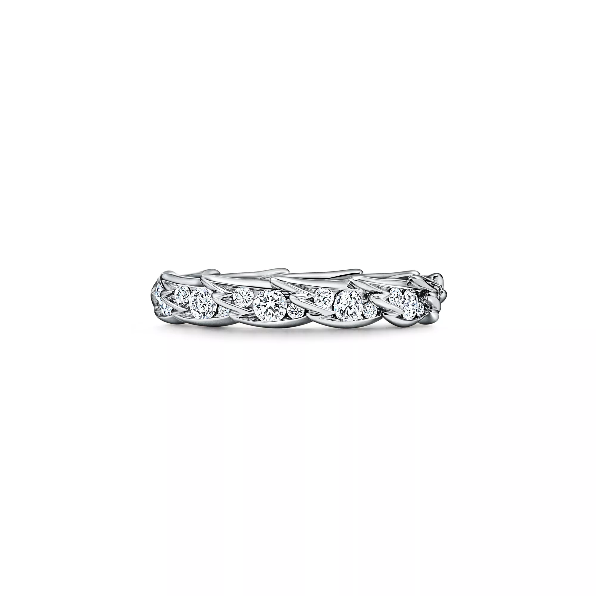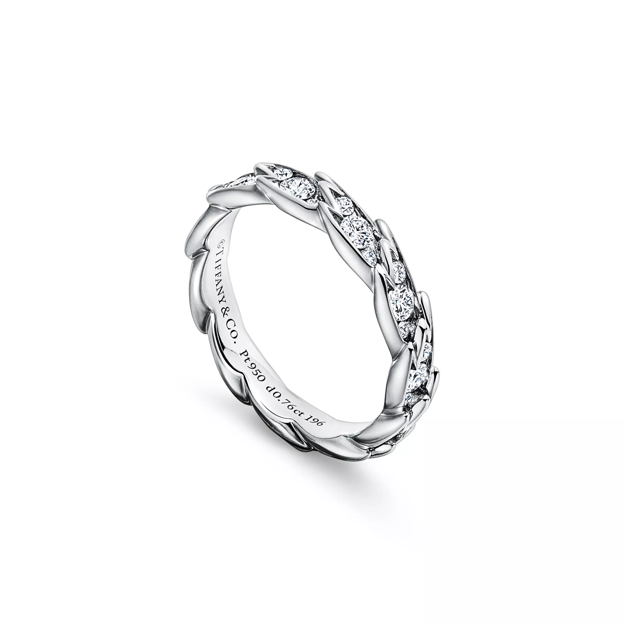 티파니 버드 온 어 락 윙스 내로우 링, 플래티늄, 다이아몬드 세팅