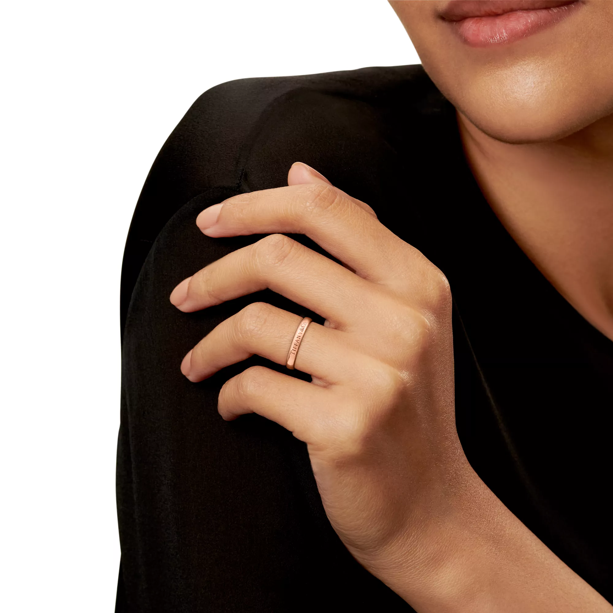 시간을 견딜 수 있도록 세심하게 제작된 이 T&CO.® 밴드 링은 사랑의 약속을 확인시켜줍니다. 18K 로즈 골드 밴드의 “T&CO.” 인그레이빙과 매끈한 곡선형 가장자리가 특징입니다. 웨딩 밴드로 착용하거나, 다른 티파니 링과 믹스 앤 매치하여 개성을 표현해보세요.