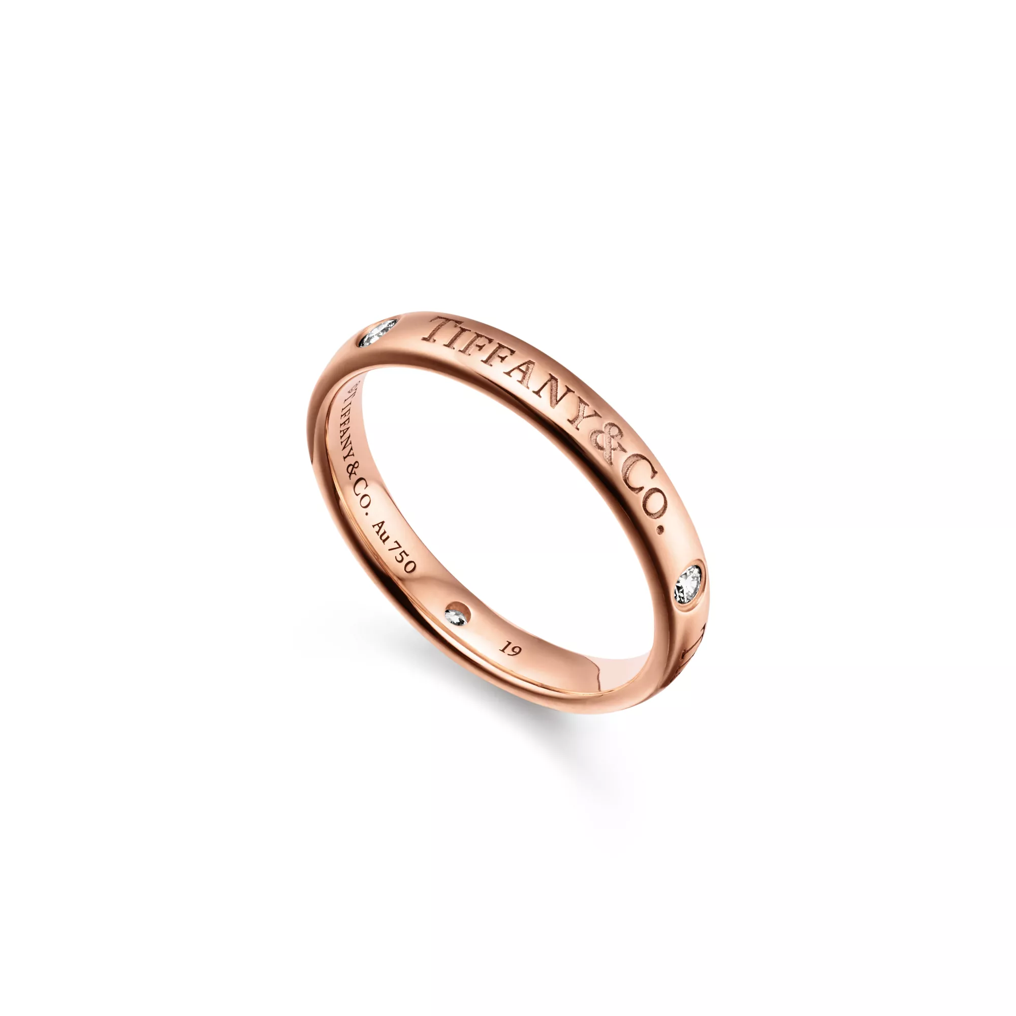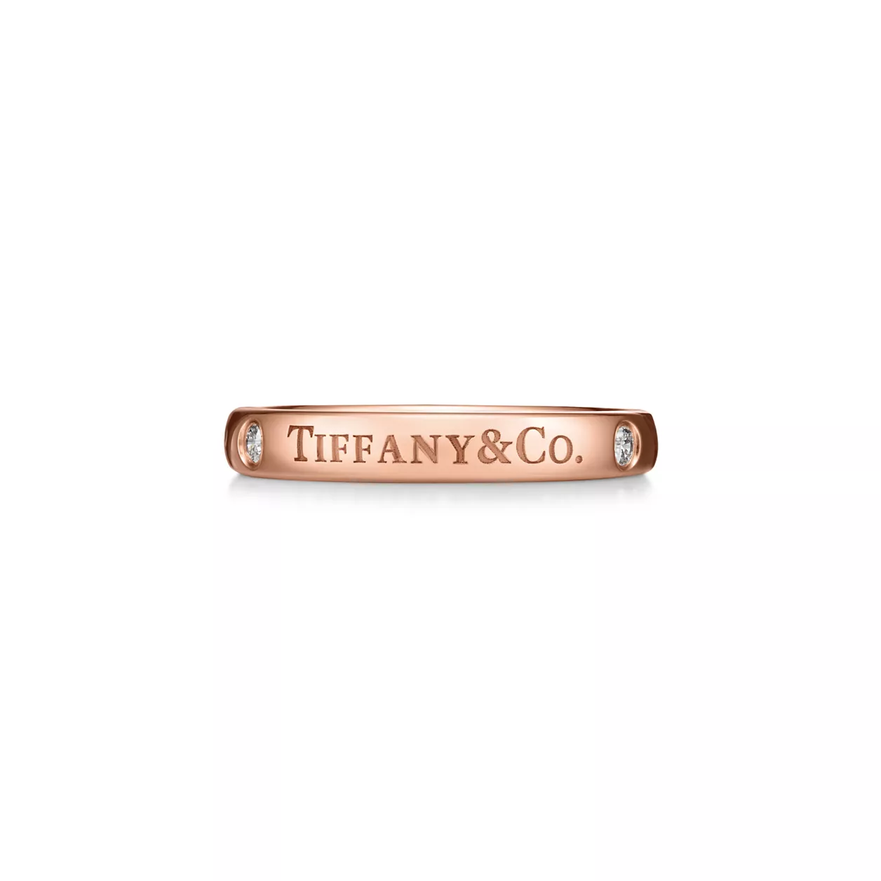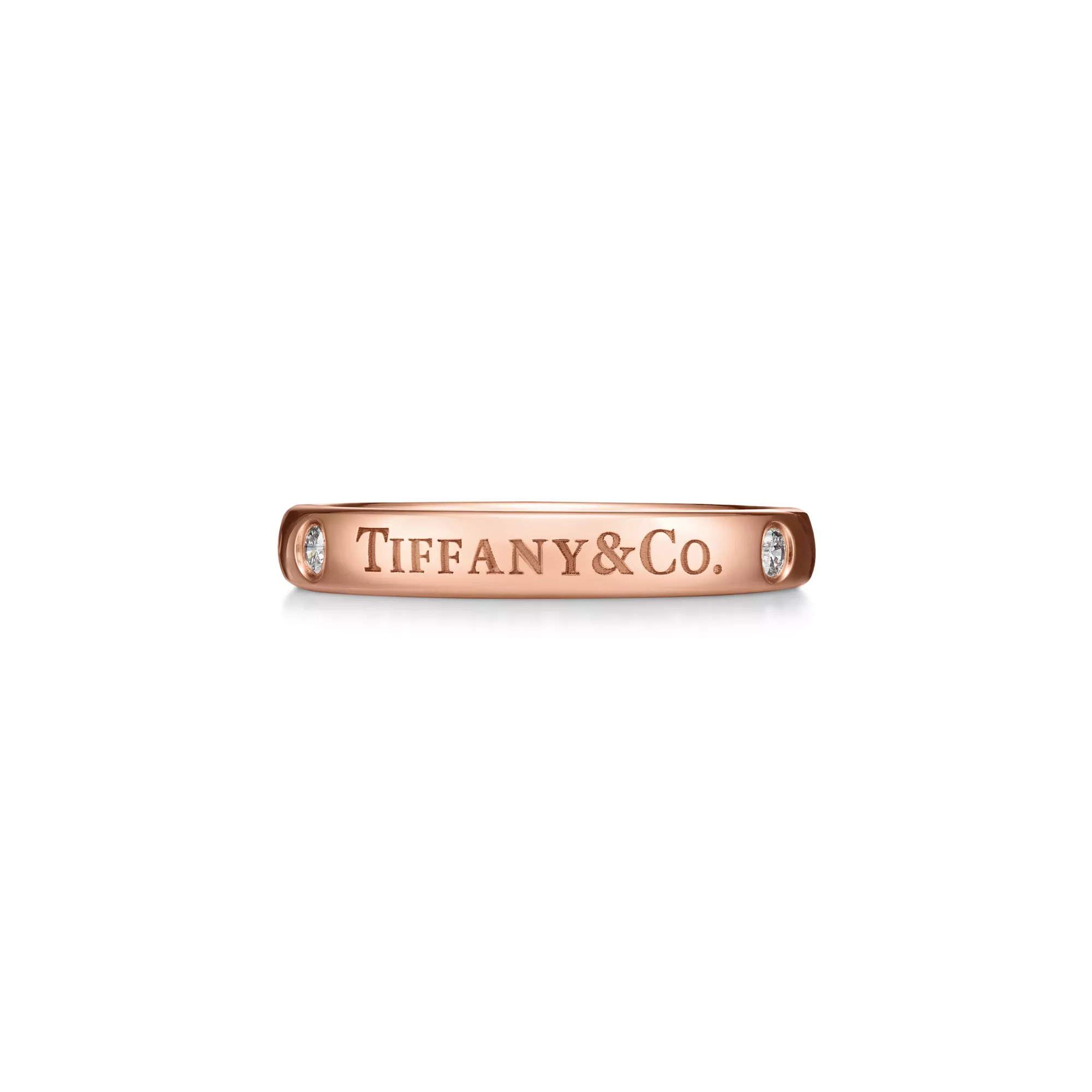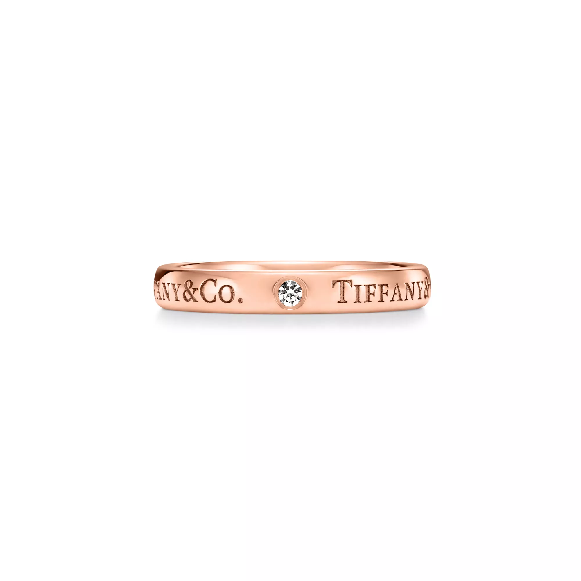 시간을 견딜 수 있도록 세심하게 제작된 이 T&CO.® 밴드 링은 사랑의 약속을 확인시켜줍니다. 18K 로즈 골드 밴드의 “T&CO.” 인그레이빙과 세 개의 다이아몬드가 매끈한 곡선 가장자리를 강조합니다. 웨딩 밴드로 착용하거나, 다른 티파니 링과 믹스 앤 매치하여 개성을 표현해보세요.