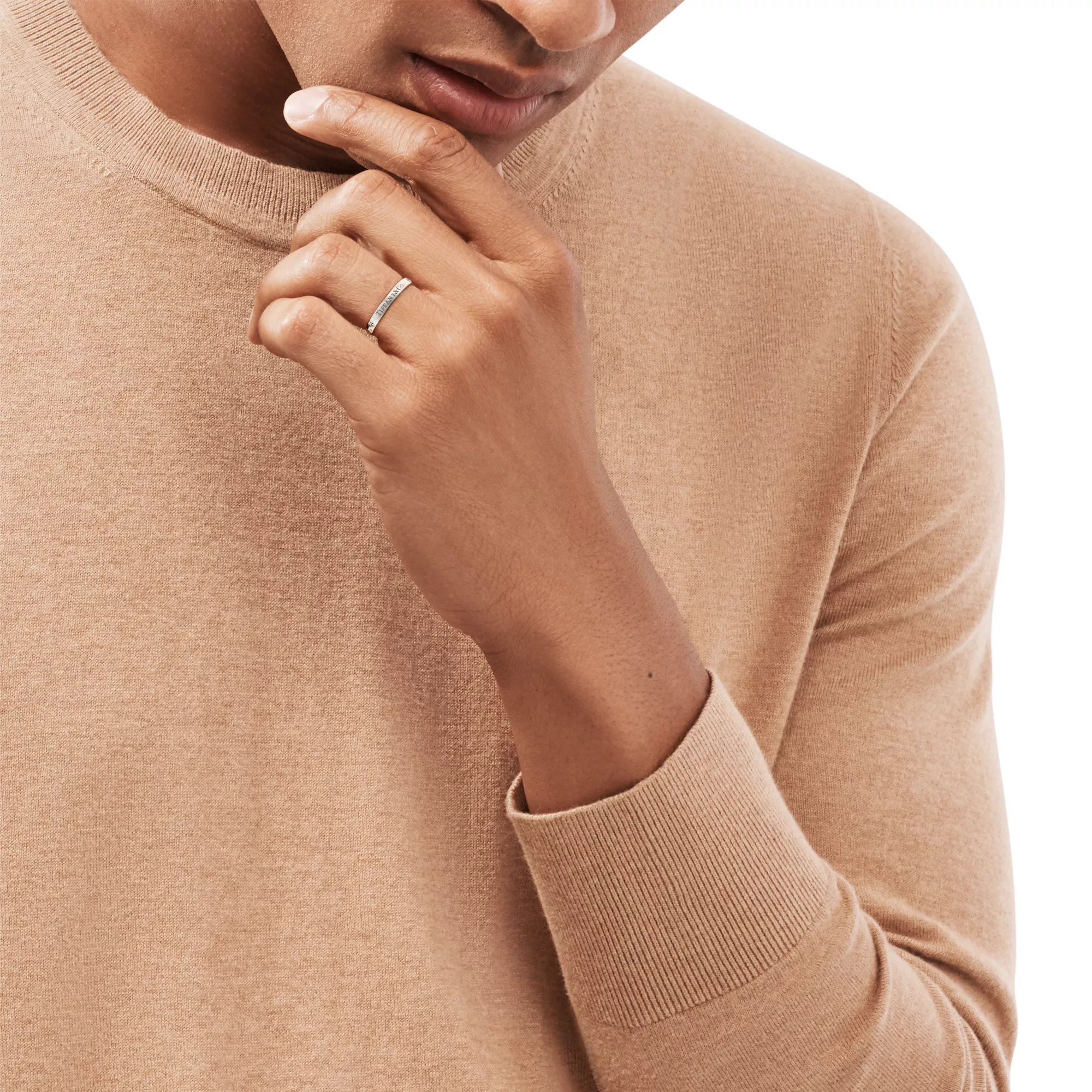 시간을 견딜 수 있도록 세심하게 제작된 이 T&CO.® 밴드 링은 사랑의 약속을 확인시켜줍니다. 플래티늄 밴드의 “T&CO.” 인그레이빙과 세 개의 다이아몬드가 매끈한 곡선 가장자리를 강조합니다. 웨딩 밴드로 착용하거나, 다른 티파니 링과 믹스 앤 매치하여 개성을 표현해보세요.