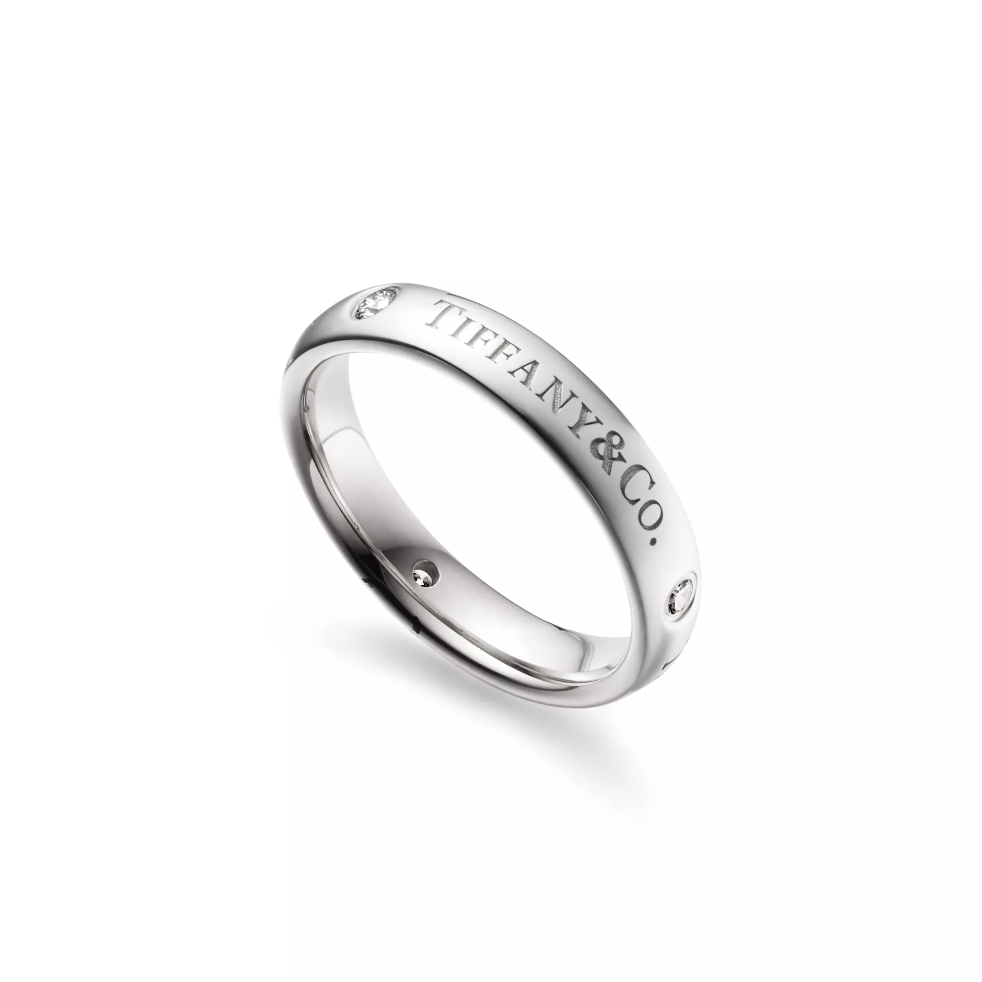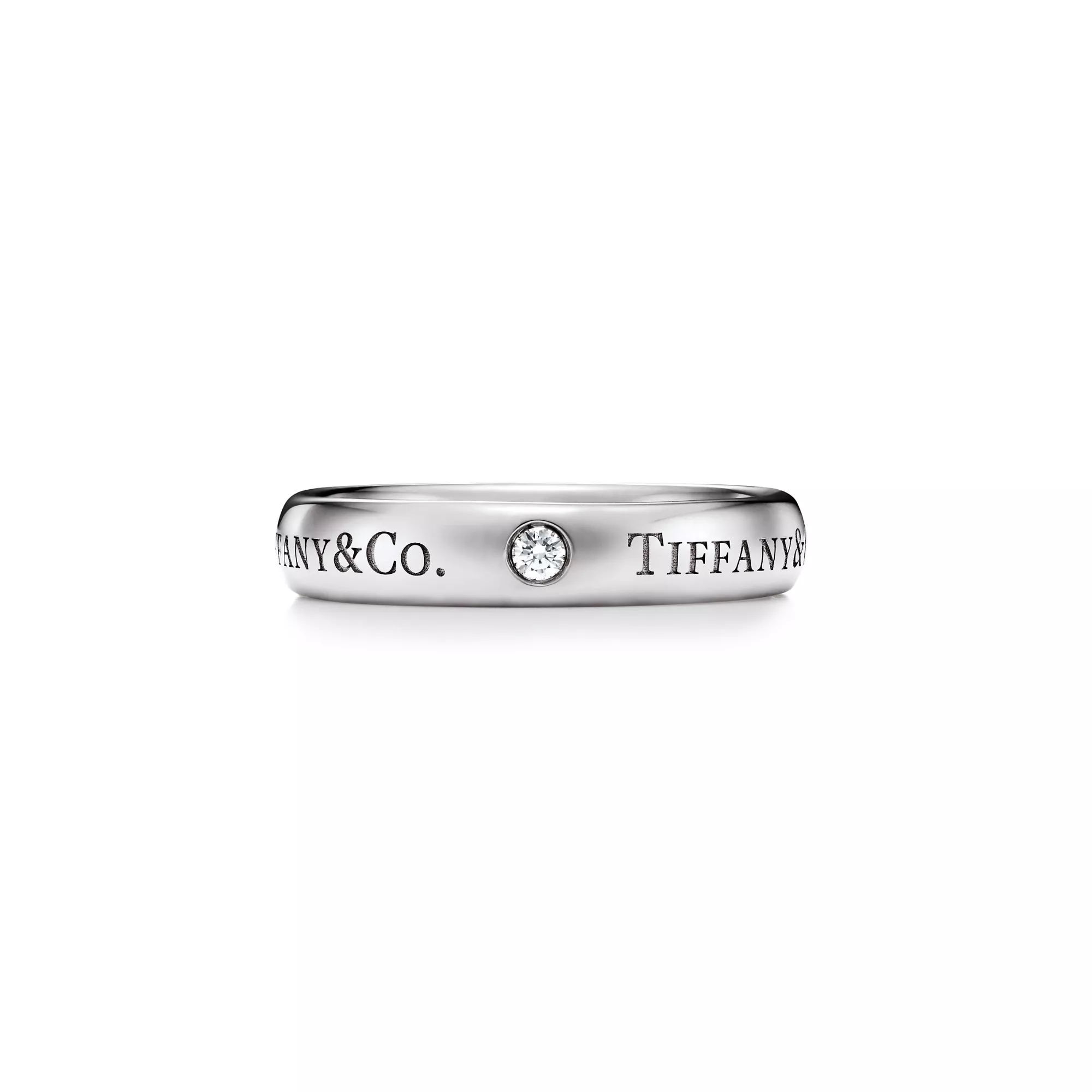 시간을 견딜 수 있도록 세심하게 제작된 이 T&CO.® 밴드 링은 사랑의 약속을 확인시켜줍니다. 플래티늄 밴드의 “T&CO.” 인그레이빙과 세 개의 다이아몬드가 매끈한 곡선 가장자리를 강조합니다. 웨딩 밴드로 착용하거나, 다른 티파니 링과 믹스 앤 매치하여 개성을 표현해보세요.