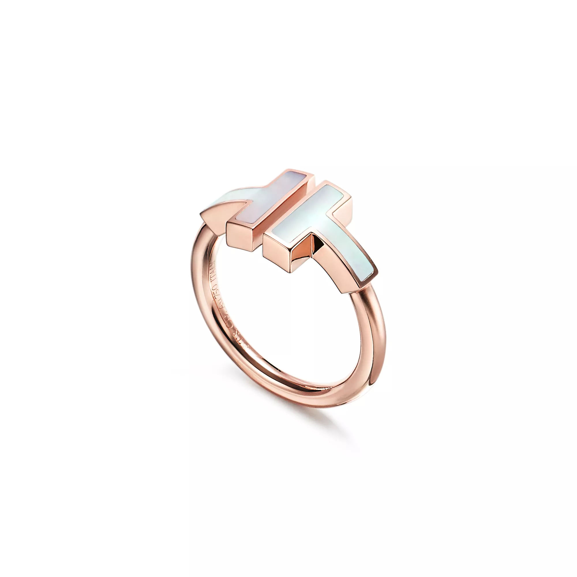티파니 T 와이어 링, 로즈 골드, 마더 오브 펄 세팅