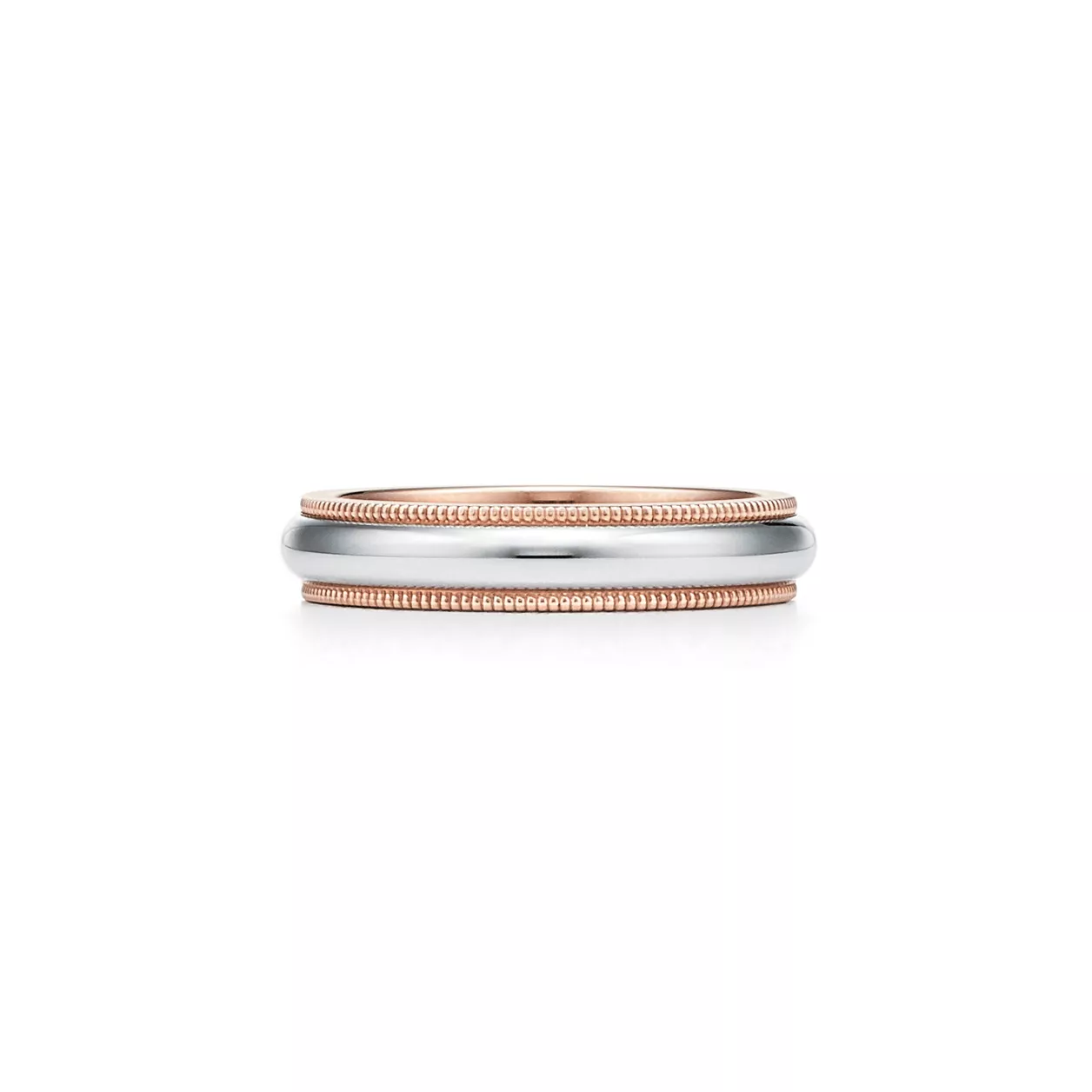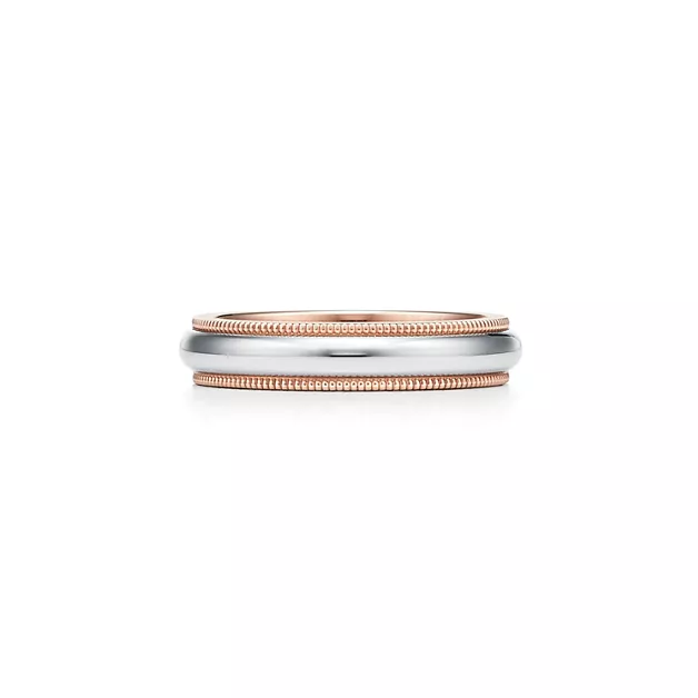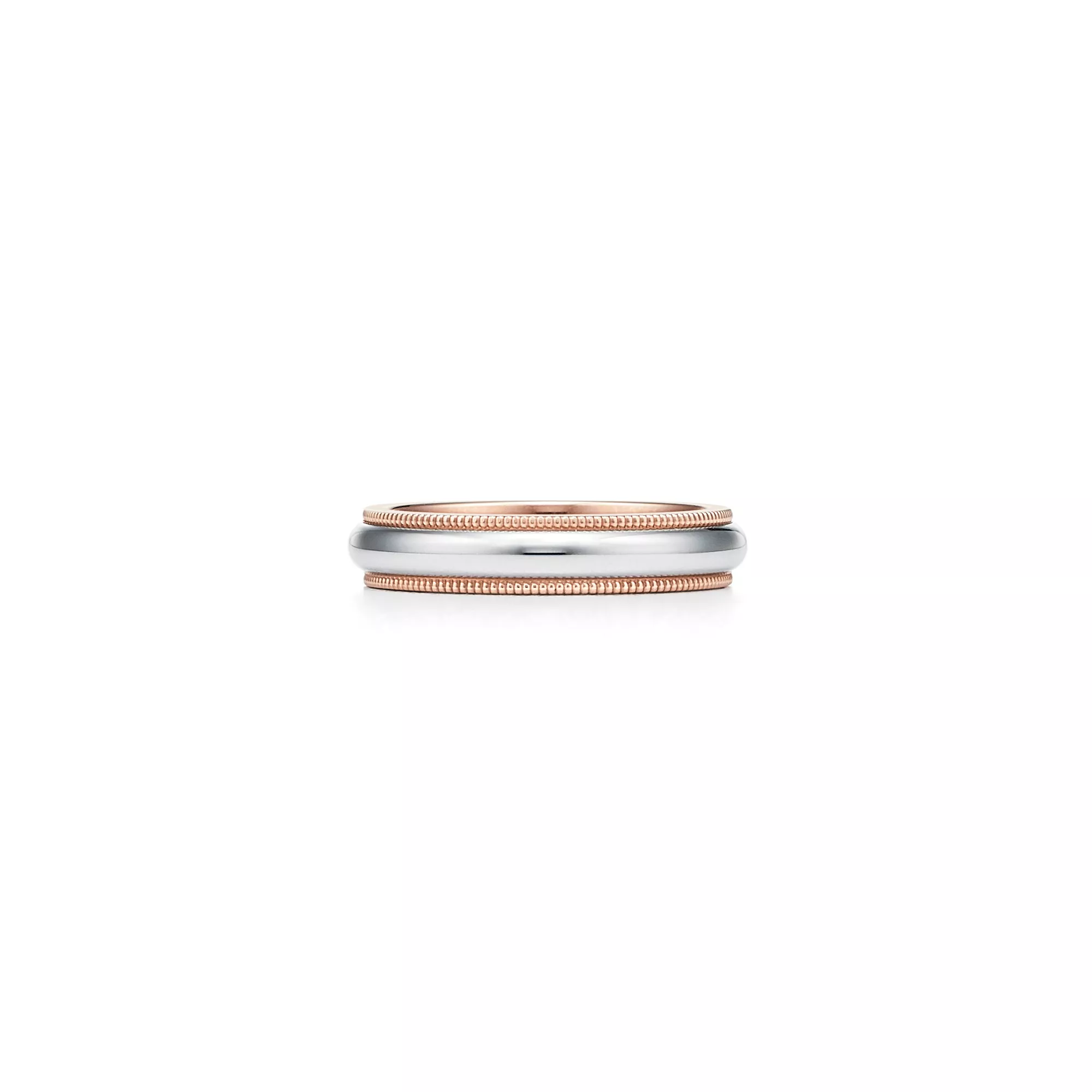 티파니 투게더 밀그레인 밴드 링, 플래티늄 및 로즈 골드, 두께 4mm