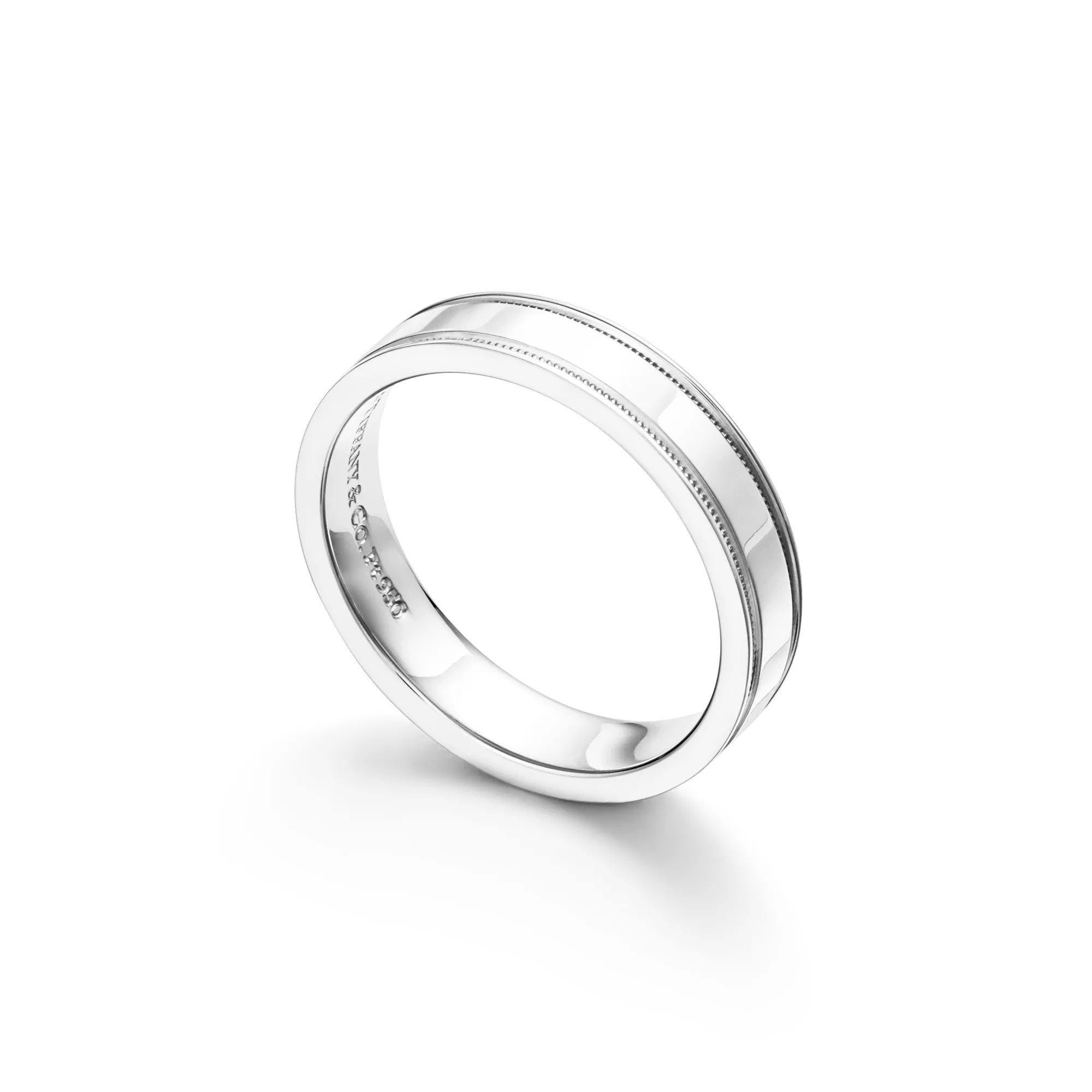 - 티파니 투게더:더블 밀그레인 밴드 링, 플래티늄, 두께 4mm